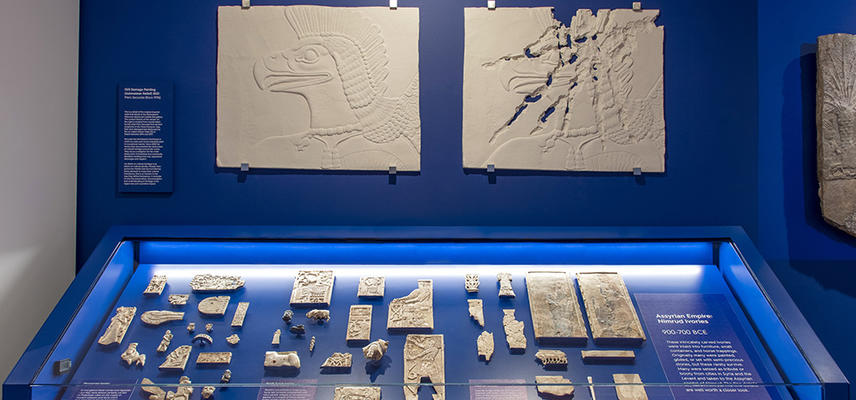 Finely sculpted stone reliefs of supernatural spirits and scenes of conquest from the Assyrian capitals of Nimrud and Nineveh are displayed at one end of the gallery. Wall cases contain objects excavated from these sites, including masterpieces of ivory carving, as well as from cities like Jerusalem that fell under the authority of these powerful states.