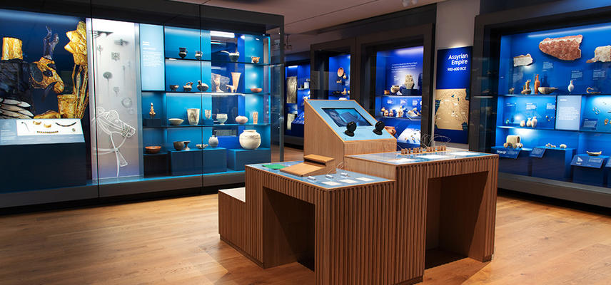 This gallery brings the Ancient Middle East to life. From Iran to the Eastern Mediterranean, across some 10,000 years, artefacts in this gallery reveal the lives – and deaths – of their owners. Discover how the objects came to the Museum, and try out interactives that let you have a go at rolling a cylinder seal and writing in cuneiform.