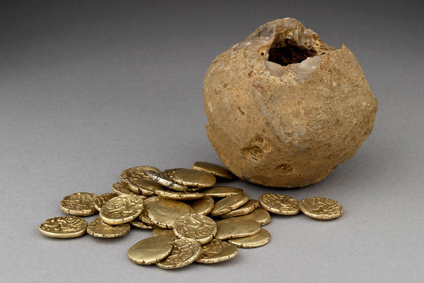 Discover a group of Iron Age gold staters buried in a flint nodule around the time of the Roman invasion, known as the Henley Hoard, and various Roman coins from Claudius I to the end of Roman Britain. These historic finds were discovered in local towns and villages, such as Cowley, Dorchester, Asthall, Horton, Shiplake and Childrey, and add to the evidence for coin use and circulation in Roman Oxfordshire.