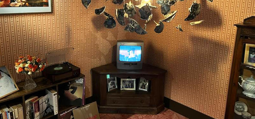 A team of Oxford‑based creatives collaborated with designers, artists, consultants and Museum staff to create the new Shedding light installation in this gallery. The scene pulls from a 1950s-60s Caribbean Living Room, reimagined with a contemporary twist.