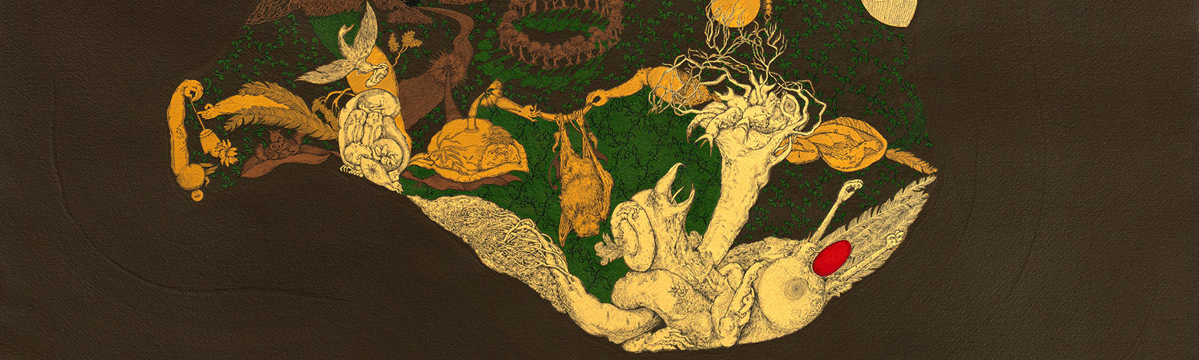 Header image details are taken from: 'Where every leaf holds a tale', and 'Beneath the Sea and the Sky, Who Holds the Ground' artworks. All header image details and works by the artist are © Soma Surovi Jannat