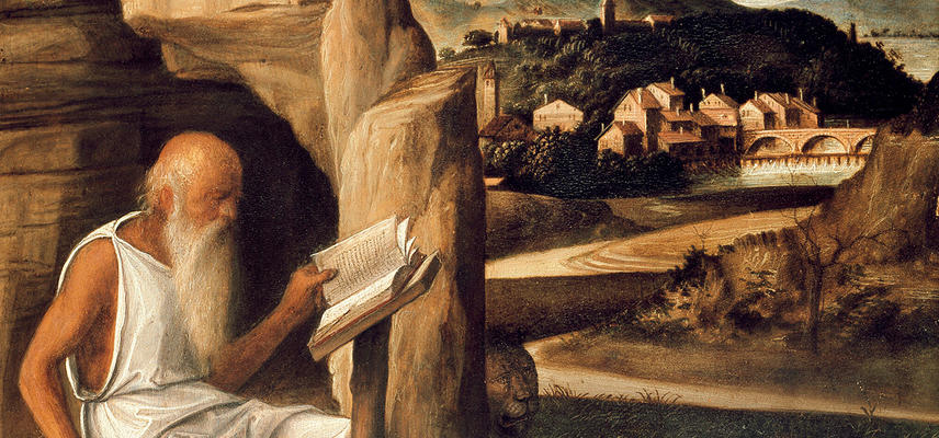 The Venetian master Giovanni Bellini is celebrated for his ability to convey serene spirituality through luminous colour. A wonderful example of this is Saint Jerome Reading in a Landscape, which for many years was enclosed in a large, ornate frame that overpowered the painting itself. It has now been reframed in a subtly gilded design by Peter Schade, based on 15th- and early 16th-century Italian models.