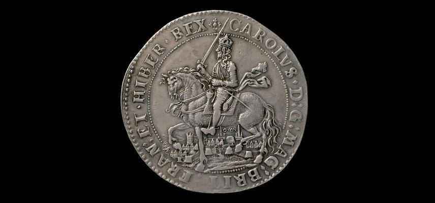 A key exhibit of the gallery is the Oxford Crown – a coin minted in 1644 in Oxford during the English Civil War – which gives a political snapshot of the time, demonstrating succinctly how well a coin can tell a story. A large replica of the Oxford Crown, made by the Royal Mint for the opening of the new gallery, gives visitors a chance to examine the coin in detail.